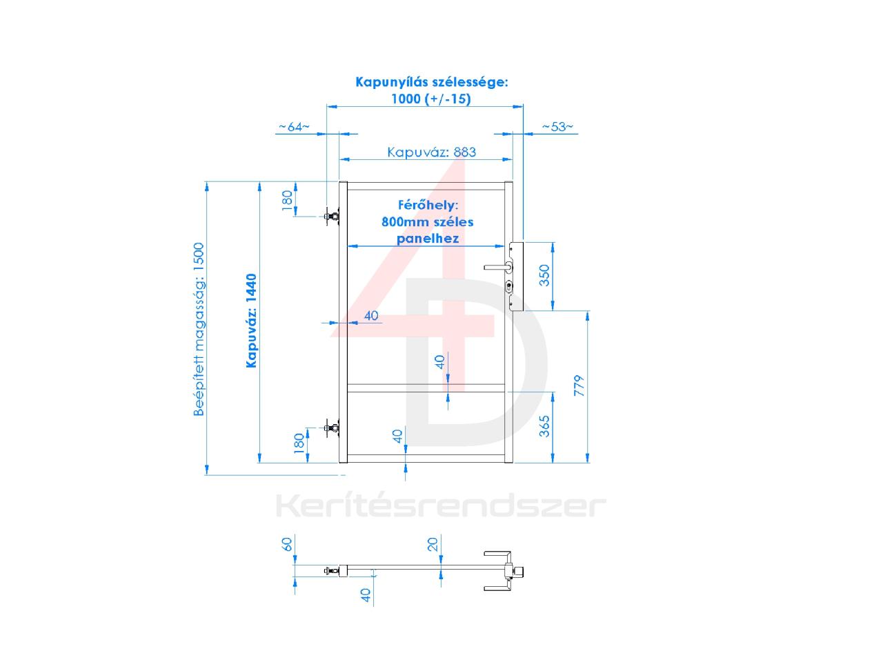 A kapu pontos paramétereit megtalálhatod a mellékelt méretvonalas ábrán.