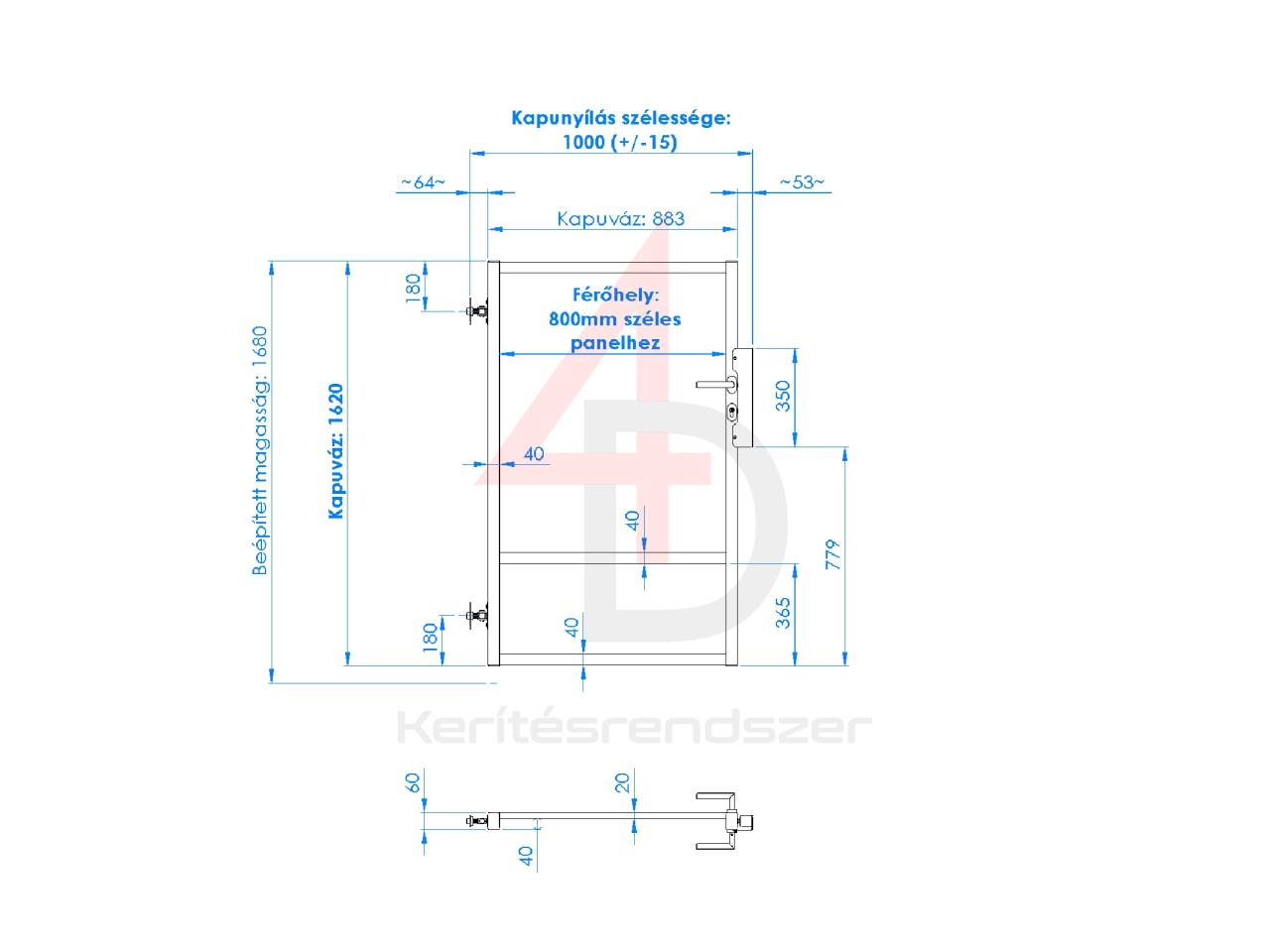 Ahogyan az ábra is mutatja, ebbe a kapuba 800mm széles 4D kerítéspaneleket lehet szerelni.
