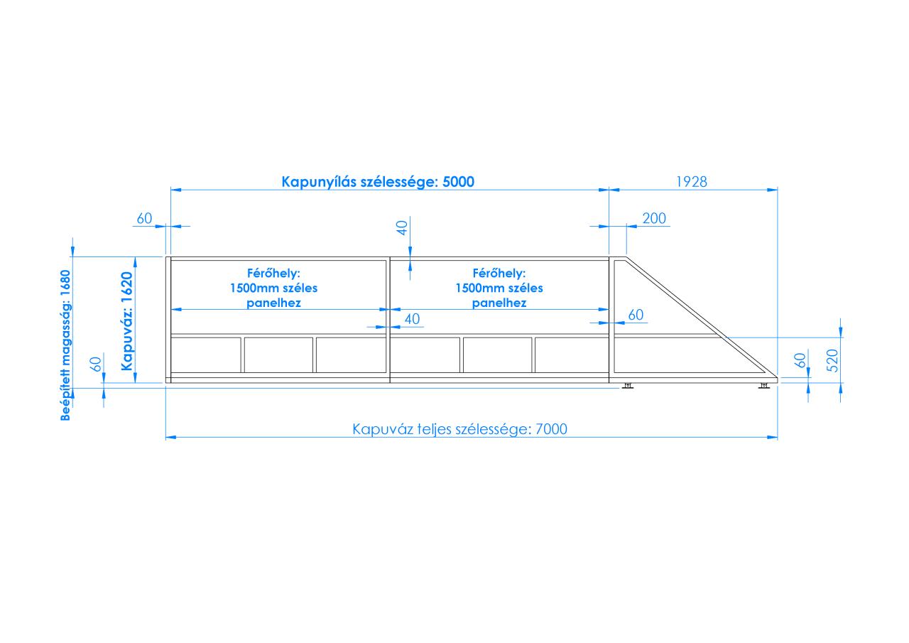 A kapu pontos paramétereit megtalálhatod a mellékelt méretvonalas ábrán.