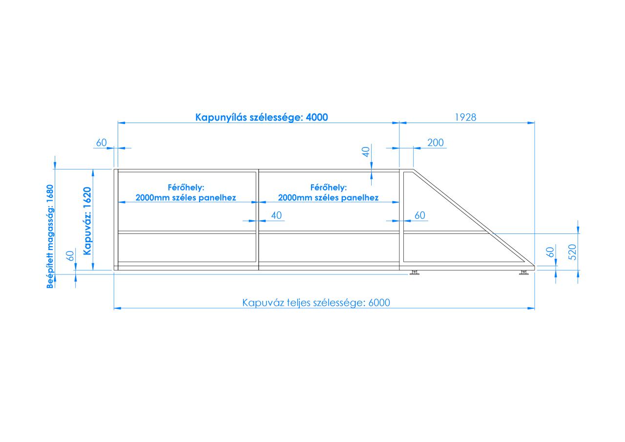 Ahogyan az ábra is mutatja, ebbe a kapuba 2000mm széles 4D kerítéspaneleket lehet szerelni.