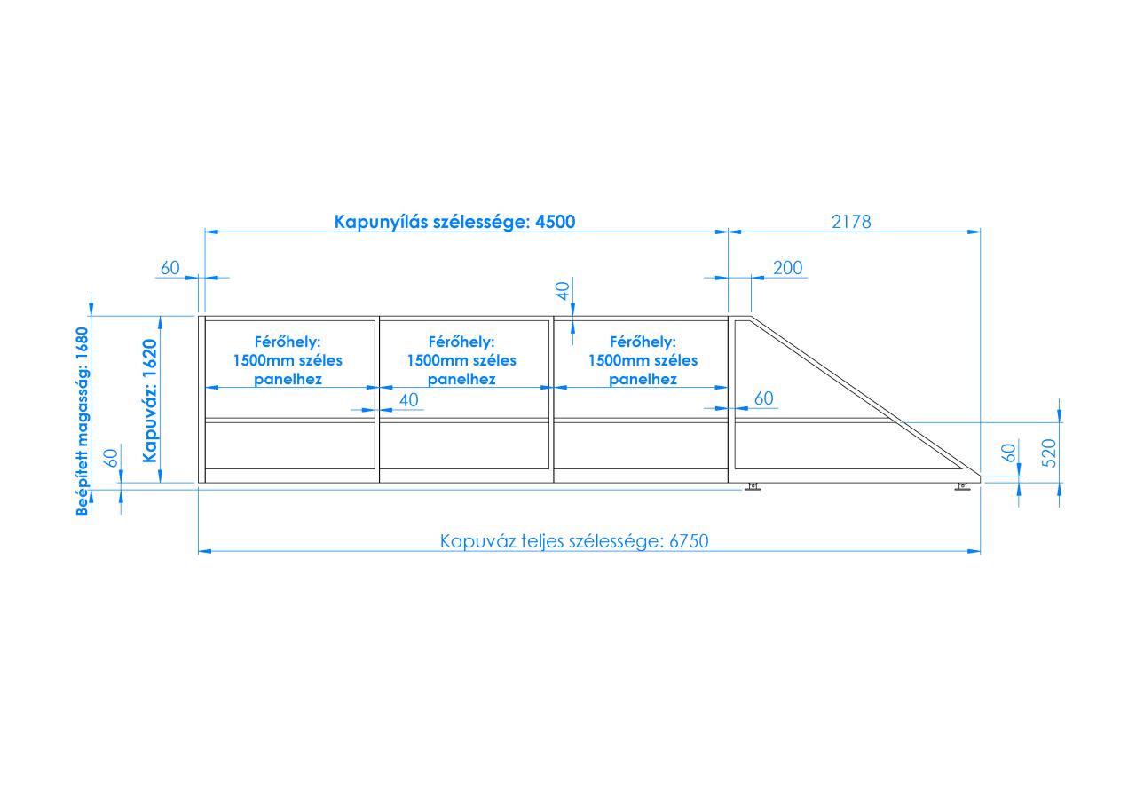 Ahogyan az ábra is mutatja, ebbe a kapuba 1500mm széles 4D kerítéspaneleket lehet szerelni.