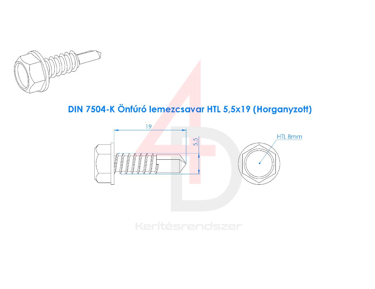 DIN 7504-K Önfúró lemezcsavar HTL 5,5x19 Horganyzott