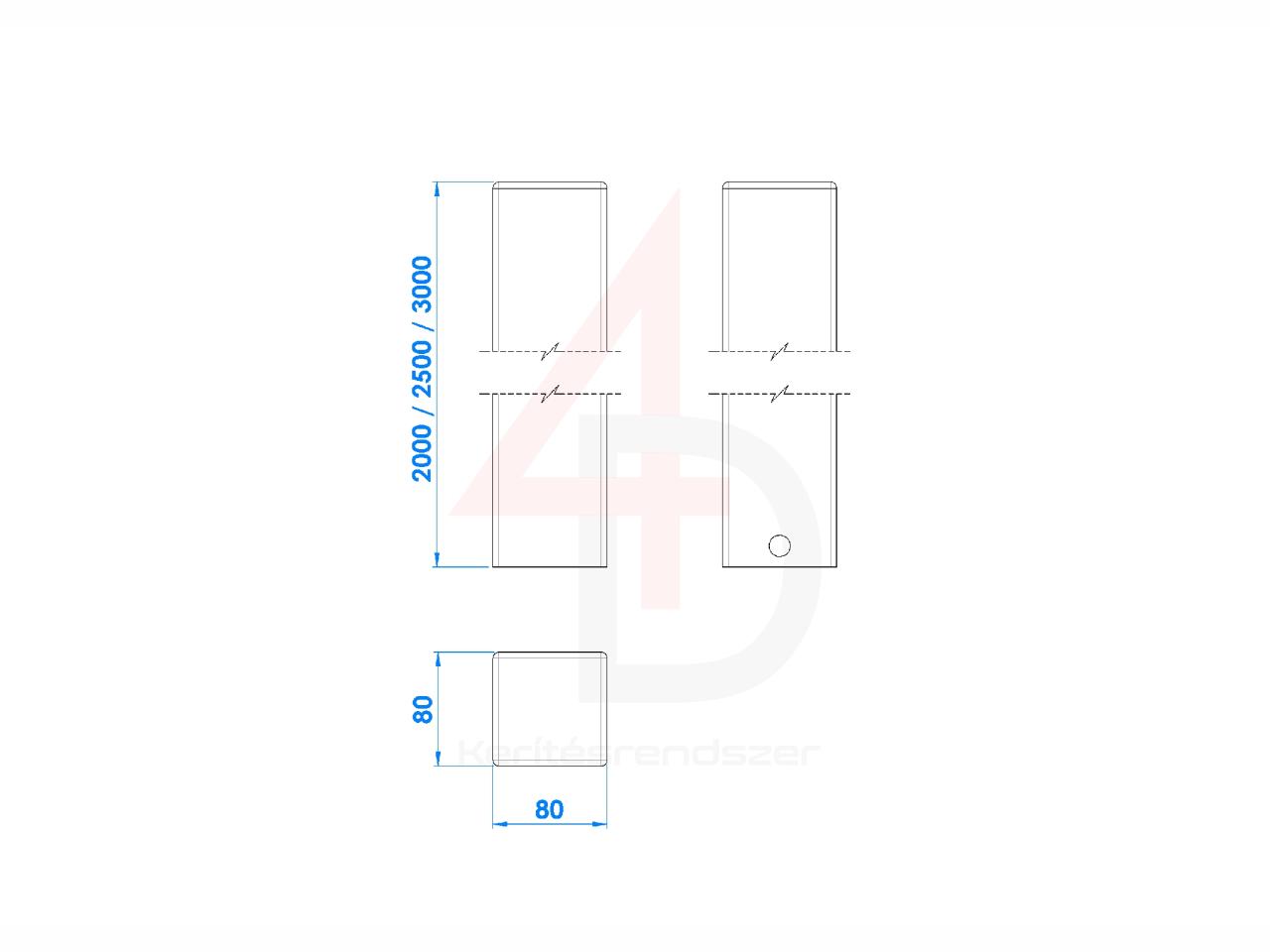 Betonozható oszlop 80x80 H:2000 (RAL 7006)